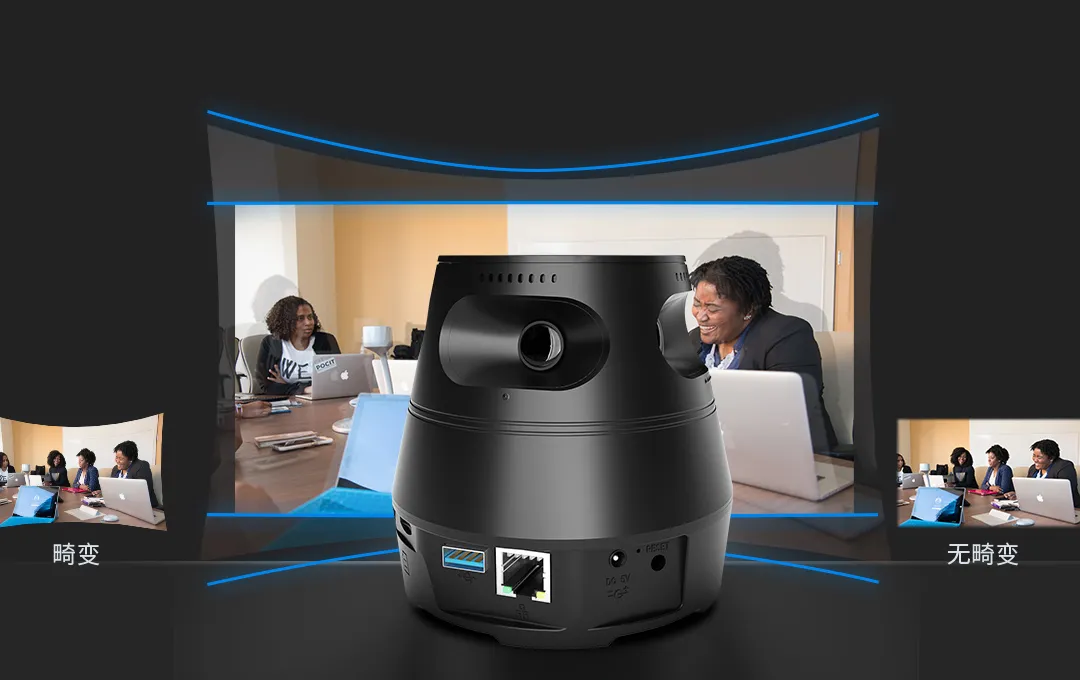 360° panoramic view with AI sound tracking, allowing it to automatically focus on active speakers.